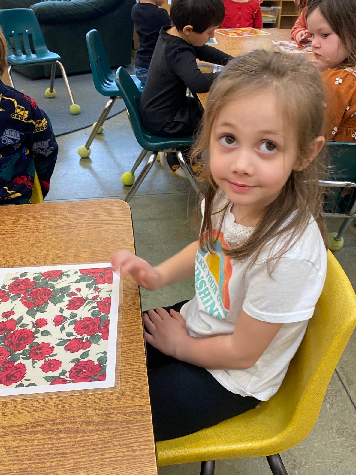 The students were then each given their own card with a different texture on it and asked to explore the room to see if they could find something that had a similar texture to their card.